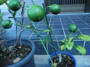 朝5時 18.1度 雨(上松)。雨が降って、生暖かな朝です。昨日の朝は寒かったから、昨夜寝る時に毛布と夏蒲団を重ねて包まったら、昨夜は暑くてなかなか寝付けなくて、夏蒲団を剥がして毛布だけで寝たのです。寒いよりはいいから文句はないけど、付いて行けない今の天気です。写真は、何処かのレモンです。同じ町なのに、なんでこの家のレモンの木には実を付けてるのでしょう。自分の家のレモンの木の方が太くて葉を沢山付けていて、余程レモンの木らしいのですが、実は一個もないのです。でも木曽でもレモンが出来る事は確かですから、少し期待が持てる様です。もう一枚は、柿の実です。今年も柿の実が色付き始め、いよいよ秋に突入です。松茸が採れ始めてもいい頃ですが、その話題はまだ聞こえて来ません。