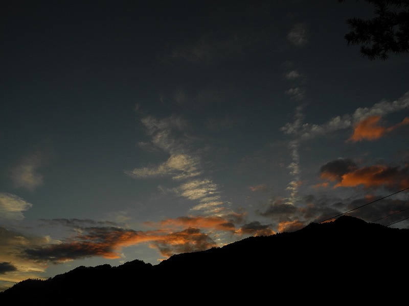 朝5時 13.9度 曇り(上松)。コオロギが一生懸命に鳴いてる、いつもの様な涼しげな朝です。コオロギの鳴き声も少なく鳴てる様ですが、赤とんぼの数がもう数えられる位になっていて、もう直ぐトンボの飛ぶ姿も見られなくなりそうです。写真は、昨日の夕焼けです。「この夕焼けなら中秋の名月が見られるかな?」なんて思いながら夕焼けを見てました。もう一枚が、その中秋の名月です。8時過ぎに山から顔を出し30分くらいのお月見でしたが、何とか見る事が出来たのです。薄い雲が次々と名月に掛って、少し経つと雲の中に消えて行きました。天空の名月を見ようと思ったら、見る事が出来なかった様です。今日のドジャースは、王手を掛けられるのでしょうか。やっぱしトーナメントの試合は「ハラハラドキドキ」で楽しいですね。