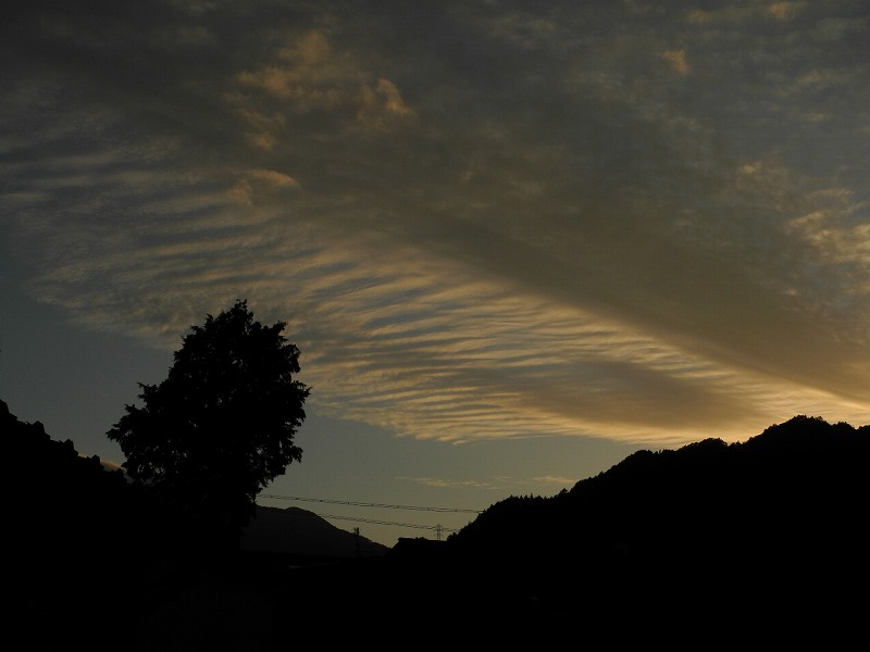 朝6時 14.1度 曇り(上松)。グレーの雲が空一面に有って、今にも雨が降り出しそうな、少し生暖かな朝です。ドジャースは大谷選手は全く駄目でも、佐々木投手の活躍も有って、地区シリーズに進出する事が出来、先ずは一安心です。全く使い物にならなかった選手が、最終版の一番勝たねばならない時に現れるなんて、球団全員が驚き喜んでる事でしょう。日本に居た時を全く知らない私ですが、「あんな凄い投手だったんだ」とおばさんと二人して大フアンになって居ます。写真は、昨日の秋の雲です。昼間の雲は入道雲が消え、如何にも秋らしい雲です。夕方の夕焼雲は綺麗な筋雲に成って、秋本番とは言えない変な感じの天気が続いてるけど、秋の感じが漂って居た空模様でした。