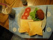 朝6時 15.2度 曇り(上松)。薄く雲が掛かって、この数日同じ様な寒くも暖かくもない朝になってます。今日辺りから台風23号が太平洋を横切って行く様ですが、何も起きない事を祈るだけです。大リーグは今日から地区優勝シリーズが始まり成すが、大谷選手のドジャースはシーズン中0勝6敗の相手のブルワーズとの戦いで、大いに心配なんですが、何とか勝ち抜く事でしょう。写真は、昨日の夕焼けです。この茜色の夕焼けは、年に数回しか見る事のない♪まっかっか空の雲 みんなのお顔も真っ赤っか♪です。おばさんが「今日の夕焼け真っ赤だよ!」と教えてくれたのです。もう一枚は、ランチです。8枚きりの食パン2枚をオーブンで焼いて、スライストマト レタス数枚 昨日の夕食のコロッケ1個 アイスコーヒーです。パンに野菜を挟んで野菜トーストにして、コロッケは手で掴んで食べます。大概こんな感じのランチをしてます。