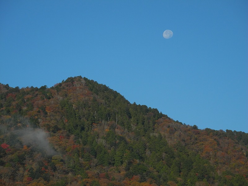 朝7時 5.6度 晴(上松)。いつもと変わらない、空気の冷たい朝です。朝の一桁の気温は今日で12日目なんですが、此の侭二桁になる事もなく、冬になってしまうのでしょうか?。10月の最終週から氷点下の日も有ったりで、陽が沈んでからの低い気温に悩まされてます。写真は、十一月の満月です。昨夜の満月は一番大きく見えるスーパームーンだそうで、カメラを向けてるとおばさんも「本当に大きいの?」と見てたけど「分からんね」でした。写真を並べて比較すれば分るでしょうけど、目で見てもはっきり分かる大きさではない様です。もう一枚は、ドウダンツツジです。見事に赤く紅葉してて、迫力を感じます。赤沢にもドウダンツツジは沢山有るけど、秩父ドウダンツツジはここまで赤くはならないのです。でも、赤沢の紅葉も綺麗ですから、一度は見に来て下さい。