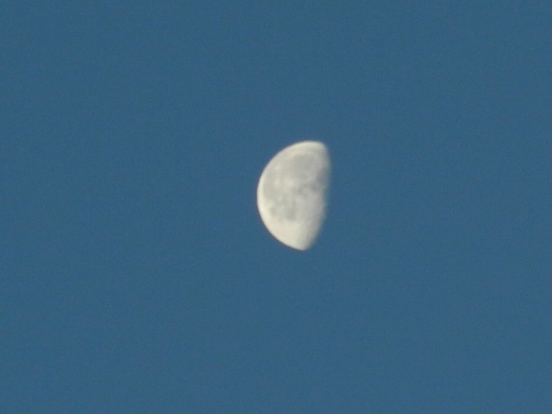 朝6時 -8.83度 晴(上松)。晴れていて、「是でもか!」と言う位、冷え込んでる朝です。写真は、下弦の月です。霜が降りて空気も目茶苦茶に冷たい中、晴れた空に「ぽっかり」浮かんでる下弦の月です。上弦の月もいいけど、この下弦の月は深夜に登って来て、空が明るくなる頃輝かせてるのがいい感じで昼見るお月さんも良いものです。写真撮影で外に出たけど、まるで「冷凍庫の中」の様でした。もう一枚は、デザートです。「黒豆ヨーグルト」とおばさんが命名したデザートですが、是が美味しいのです。バナナと林檎の角切りにヨーグルトを掛けて、其処へ黒豆と煮汁を掛けたものです。黒豆の煮汁がたっぷり掛けて有るから、丁度いい酸味になって、もう少し大盛でも食べられるのですが、おばさんが「そんなことしたら直ぐ黒豆が終わっちゃうから」と小鉢で我慢させられています。昼食が楽しくなってます。