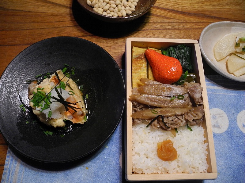 朝7時 -9.29度 快晴(上松)。立春だと言うのに、滅茶苦茶に空気の冷たい朝です。予報では「一瞬だけど暖かくなる」なんて洒落を言ってたけど、何処が温かくなったのでしょうか?。明日のブログで「昨日は暖かかった」なんて書きたいものですが?。写真は、朴の枯葉です。きっと湿気のない場所に落葉した為か、綺麗に葉脈だけになってます。ランプシェードの、柄として使えそうです。もう一枚は、「恵方弁当」です。恵方巻は関西の海苔業者が販促の為に考えた太巻き寿司なんだそうで、特別の意味はない様ですから、我が家では弁当にご飯を詰めて「恵方弁当」を頂きました。食べる前に豆撒きをして南南東に一礼をし、無病息災を願ってから「頂きます」の節分です。弁当に詰められたご飯の美味しい事。是は毎日でも良いのですが、作ってはくれません。昨夜は「おまけ」が有って、「辛子明太子餅の揚げ出し蓮根」なる一品です。お餅を半分くらいに切って油で揚げ、明太子を絡め蓮根で挟んで唐揚げして、出汁を張って食べるのです。蓮根のはさみ揚げは知ってるけど、明太子との相性はリクエストしたい位の美味しさと、目鱗の一品でした。この夕食なら、今日も節分したいくらいです(笑)。