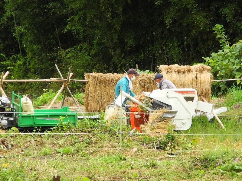 朝7時」14.3度 曇り(上松)。降って居た雨も上がった様で、いつもよりは暖かな朝です。最近のNEWSで「熊との遭遇」が報じられてますが、昨日なんかは二人が死亡してるのですから、深刻な問題の様です。キノコの季節になって山に入る人も多くなるからなのでしょうけど、人が山に入れば熊は奥の方へ移動するのが普通だと思ってたら大間違いの様で、きっと熊は人が怖くなくなってるは間違いなさそうです。キノコ採りも「イクチ」等の雑キノコを採る人は、鈴や鳴り物を携帯するけど、松茸や舞茸などの高級キノコ専門の人は、静かに人の気配を消して歩き回るから、是も問題なのでしょう。まあ自分が大事なら、遣らねばならない事は一つだと思います。写真は、稲刈りです。朝散歩に出掛けたおばさんですが、仕事の早さに驚いたのか、午前と午後の田んぼの様子を写して来ました。恐らく今日が雨予報でしたから、雨で穂が垂れてしまうのが嫌で、急いで刈り取りを終えた様です。きっと重い腰を上げたのでしょうけど、農家さんも大変ですね。