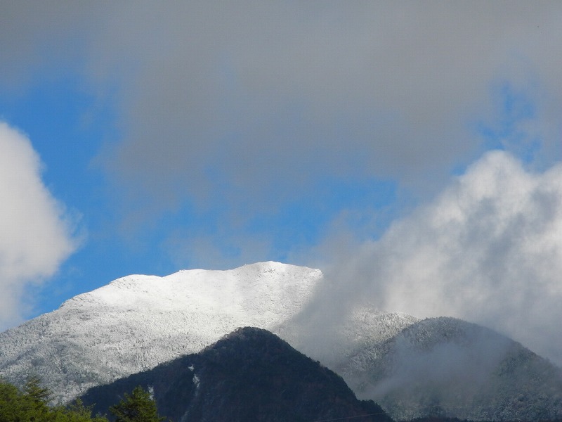 朝6時 氷点下1度 晴(上松)。耳朶が「ちじみあがる」程寒い、氷点下の朝です。写真は、昨日の駒ケ岳です。麓近くまで雪が降って居て、よく町にまで雪を降らせなかったものだと、驚いて居ます。赤沢は標高が1000mだから、もしかしたら雪が舞った?積もった?かも知れません。いくら寒気が日本上空迄降りて来たとはいえ、一気にここ迄冷え込むなんて、老人にはついて行けませんが(涙)。少しばかりの畑ですが、10月にビニールシートで春菊とほうれん草を囲って置いた事は、雪隠農夫には良く出来たものだと、褒めて上げてます(笑)。こんな冷え込みをその儘放置してたら、既に枯れてなくなった筈で、「春菊天蕎麦」が食べられなくなってた事でしょう。今シーズンの冬は、一体どんな事になるのでしょうか?。