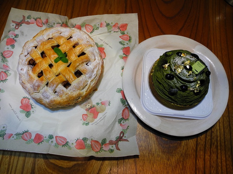 朝7時 8.1度 曇り(上松)。一日降った雨で、裏の十王沢の流れの音が少し大きくなってる、暖かな朝です。今朝は珍しく、ストーブが焚かれてないのです。昨日と同じ朝の気温だけど、おばさんは「こんな暖かならストーブ焚かなくていいよ」なのですが、確かに昨日よりも暖かく感じてる朝です。写真は、雨の紅葉です。昨日は久し振りに長雨で、朝の気温は8度と暖かかったけど、残念なのが気温が昼になっても上がらず、肌寒くてストーブを焚きっぱなしの一日でした(涙)。もう一枚は、誕生ケーキの贈り物です。知多の山さんが「おばさん誕生日おめでとう」と手作りケーキを2個送ってくれました。抹茶モンブランのパウンドケーキとアップルパイです。抹茶ですが、最近「抹茶ラテを飲んでみたいけど何処で飲ましてくれるの?」なんておばさんにおねだりしてたけど、何故か抹茶のケーキが届いたのです。なかなか大人のケーキの味で、誕生日前に「おめでとう」と半分頂いちゃいました。最近メキメキ腕を上げていて、「魚屋兼ケーキ屋」でも始められそうです(笑)。今日は、釣りたての真鯛が届くのですが、休日をフルに活用してる様で、少し休んだ方がいいのではないでしょうか。