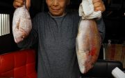 朝6時 +0.2度 薄曇り(上松)。辛うじて氷点下を免れた、寒い朝です。一時的に氷点下にはなったみたいだけど、マイナス3,4度にならなかったのが幸いです。昨日の午後の気温の下がり方は尋常ではなく、今朝のマイナス3度は覚悟したのですが、何とか「氷点下チョット」だったのが嬉しい限りです。写真は、50㎝の真鯛と30㎝のチダイです。予告通り鯛を釣り上げて、15,6匹はいたでしょうか沢山送ってくれました。この真鯛とチダイは、見た目は余り変わらないけど、明らかに味が違うのです。チダイは少し柔らかく水っぽいのです。チダイだけ食べれば「美味しいね」でしょうけど、真鯛と一緒に食べると、はっきり違いが分かるのです。昨日は、真鯛の押し寿司 天婦羅 刺身 昆布締めを頂きましたが、天婦羅の旨い事。身はしっかりしてるのに食感は「ほわ」で、少し脂が乗っていて甘いのです。もう一枚は、チダイの塩焼きです。少し柔らかな塩焼きですが、とても美味しい魚です。知多の山さんが「問題です 以前送ってるけど違う魚が入ってます 何でしょうか?」とプレッシャーを掛けて来たのです。荷を開けて下処理を始めてたら、違う魚が入って居て「?」と思ったけど「チダイ?」と分りました。是も鮮魚を送り続けてくれた山さんのお陰で、結構魚通になってる様です。今回のおばさんの誕生会は、合計5,6回になりそうで、おばさんは「歳取っちゃう」なんて言ってますが「にこにこ」の誕生会が続いてます。