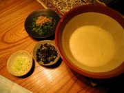 朝7時 -0.33度 晴(上松)。モズが寂しそうな声で鳴いて居る、いつもの寒くも暖かくもない朝です。昨日観てたTVで「アレルギー」に付いて放送してて、「食物繊維」の摂取が大事だと言ってました。その摂取量が20なんグラムでしたが、大体一つの野菜から摂取出来るのが3グラムと言うのですから、三食に分けても相当量の食物繊維が必要になる様です。でも「花粉症」等にも効果があるそうですから、体にもいいし試す価値は有りそうです?。自分はアレルギーは「鯖」だけですが、是もアレルギーと言えるのか、昔「酢鯖」を食べて全身に酷い発疹が出て、病院で点滴を受けた事が有って、それ以降怖くて食べる事が出来なくなったのです。それ以外はアレルギーなる物とは無縁で、「老人クシャミ?」はちょくちょく出てるけど、芋もカボチャも牛蒡も好きで食事の方は大丈夫の気がしてます。写真は、とろろ汁です。このとろろ汁は、すり鉢であたりをしっかり取るのが美味しくなる方法で、おばさんが時間を掛けてあたりを取ってくれてます。おばさんなんかはご飯に掛けずに、その儘「美味しい」と飲んで居ます。この食事もおばさんの母親に感謝で、いつもこんな食事を作ってくれたから、今でもその習慣が残ってる様で、こんな所にも母親の大事さが有る様です。もう一枚は、薪割です。兎に角雪が降る前に片付けたくて、始めまたのですが、歳と共に根気が無くなってる様です(涙)。