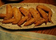 朝7時 +5.3度 ほぼ曇り(上松)。モズが寂しそうに鳴いて居るけど、暖かな嬉しい朝です。昨夜は雷鳴と強い雨で目が覚めてしまい、少しだけ寝不足気味な、目覚めなんです。今朝で4日目のプラス気温ですが、こんな朝はそうは長続きしないでしょうから、「明日の朝は寒いだろうな?」と思ってるのが一番かも知れません。写真は、昨日の駒ケ岳です。焚き付け様の「杉の葉」を拾いに町外れ迄出掛け、3籠拾って来ました。しかし熊が怖くて「NORAー。」なんて大声を出しながらだったのです。熊には鈍感な自分ですが、あれだけTVで放送されると、気持ちが悪くなってしまいます。もう一枚は、手羽先です。我が家では初めて調理する食材で、TVで続けて手羽先料理を見たものだから、つい食べたくなって作ったのです。生を茹でて火を通して置くのですが、揚げる時に180度の油温度に入れたら、140度まで一気に下がってしまい、やっぱし少ない油ではコツがいる様です。山椒や七味 黒コショウの香辛料が薄っすら効いて、「ビールが美味しいから また作って」はおばさんの感想です。