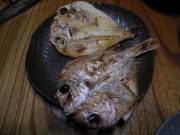 朝7時 -2.01度 小雪(上松)。細かい雪が降って居て、空気も冷たい朝です。外れて欲しい天気予報の一番が「雪予報」で、木曽が雪国とは言えないけど、雪の降る地方に住む人には外れて欲しいのが「雪予報」だと思いますが、今朝も当たってしまい残念なんです。しかも、今日は病院の定期検査の日で9時に病院到着せねばならず、「日陰に雪がないか」と慎重運転させられるだけでも嫌な感じです。写真は、野鳩です。縁側に居たら、野鳩が春菊の畑の前に降りて来たから、野菜でも食べるのかと見てたら、枯れた蕨の中を啄んで何かの種を探してました。鳩が「生野菜」を食べる訳がないのですが、今時の野生動物の変化は想像を超えてるから、「有りかも知れない」なんて思っちゃったのです(笑)。もう一枚は、真鯛の干物です。以前頂いた真鯛で一夜干しを作って置き、冷凍保存させて有る物を頂きました。手前味噌なんですが「非常にいい塩梅」で「ペロリ」です。もう一品作ったのが、オオグチイシナギの味噌漬で、3日間漬け込んで、是も酒粕が少し利いていい味でした。今週末は「キンメダイ釣り」で出船する予定とかですから、大漁を願ってるのです。