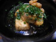 朝7時 -2.79度 晴(上松)。霜も薄っすらで、氷点下2度でも、何かしら暖かく感じる朝です?。この氷点下も、寝る時はまだプラスだったのですが早朝3時頃から急に下がり始めて、朝の7時が最低気温になって居ます。今日明日と晴れて暖かくなりそうですから、少し安心の週末になりそうですが?。写真は、おばさんのリースです。クリスマス用に作ったのか、そんな雰囲気の有るリースです。昨日は、門松様に細めの破竹と、焚き付け用の杉の葉を頂きに行って来ました。この2年は、細めの破竹で床の間に飾れる門松を作ってます。家に飾るには丁度いい大きさで、自分は好きなんです。今日辺り寸法に切って形を整えて置けば、おばさんが門松にしてくれる事でしょう。もう一枚は、揚げ出し豆腐です。季節が変わり、こうした食べ物がほんと恋しく美味しくなります。TVを観ながら「お待ちどう様」を待つのは楽だけど、豆腐の水抜きをしたり、作るおばさんはいつも大変な思いをしてくれています。感謝。