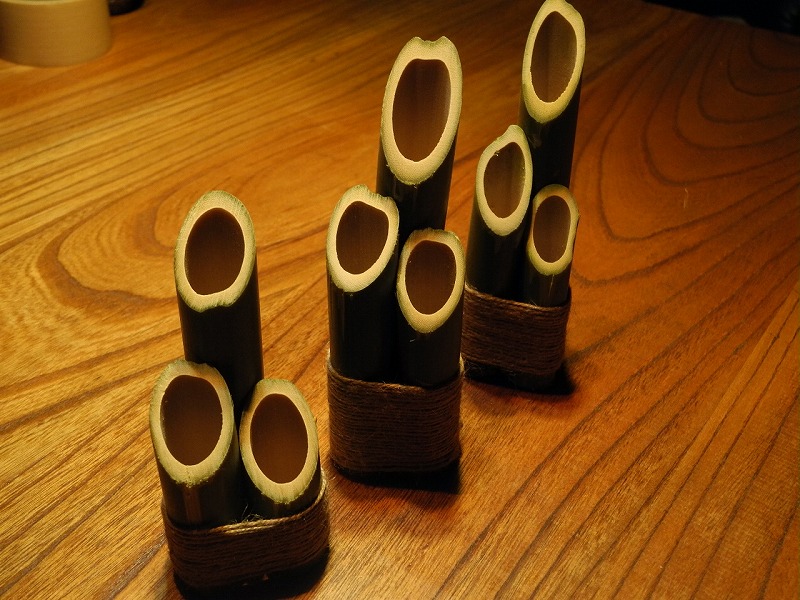 朝7時 +2.7度 曇り(上松)。霜もなく曇って居て先が思い遣られるけど、ぬくとくて嬉しい朝です。昨日は一日雨が降ったり止んだりでしたが、氷点下にもならず、暖かで嬉しい一日でした。今日辺りは、重い腰を上げて天井の煤払いと梁の拭き掃除をしないと、いよいよ切羽詰まりますが、その重い腰が上がるのでしょうか?。写真は、ミニ門松です。先日、町外れの竹藪で頂いて来た破竹で、ミニ門松を作って遊んでました。小さいのは丈10㎝位で大、きいのでも15㎝ないくらいなのです。玄関に飾らず床の間にちょこんと置くのですが、松の葉や南天の実を飾ると、何とも正月気分になるのです。もう一枚は、大根餅です。何とも奇妙な物が食卓に並びましたが、食べてみると確かに「お餅風味」なのです。「韓国海苔と一緒に食べたらいいかも?」で海苔を撒いて食べたらもっと美味しくなって「いけるな」だったのです。おばさんも「カレーうどん」に合わせたお菜を考えた様で、大正解の一品でした。