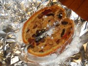 朝7時 +5.2度 曇り(上松)。曇り空ですが、暖かくて嬉しい朝なのです。今日は一日中雨の予報になってたけど、まだ雨は落ちて居ません?。この二日間のプラスの暖かな朝は、氷点下が当たり前の住民には、ほんと嬉しい気温なんです。都会の方には信じられないでしょうけど、この気温なら慌ててストーブに点火しなくてもいい暖かさなんです。この暖かさも明日からは急降下して、「寒い 寒い」を口にしなくてはならないかも知れませんが。写真は、クリスマスです。山さんから頂いて残して置いたシュトーレーンを頂き「祝クリスマス」です。市販の物より具材が大量に入ったこのケーキは、手作りそのものです。もう一枚は、鱗剥ぎ?です。先日、知多からの鮮魚を捌く時に、鱗剥ぎが何処を探しても無くて、鱗と一緒にゴミ袋の中に消えちゃったかも知れません?。包丁で鱗を剥いだのですが、形を思い出しながら木で作っちゃいました。取っ手は壁塗りの時使う小手なんですが、もう使う事もないし磨いて取り付け「まあまあ」の仕上がりです。しかし鱗が引けて初めて「鱗剥ぎ器」になるから、鱗が上手く取れてくれるのでしょうか?。でも、工作ってほんと楽しいものです。