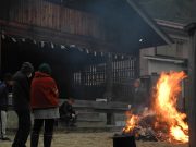 朝7時 -7.98度 晴(上松)。1㎝の積雪で辺りは真っ白になって、気温も氷点下8度で、外に出ると瞬間目覚める寒さです。NEWSで「大雪警報」を言われ、確かに昨日は雪が舞ってたから、覚悟はしたのですが、1㎝とは少し脅し過ぎではないのでしょうか。写真は、どんど焼き火入れです。住民の多い地区でしたらもっと高く積み上げられて、盛大に燃え上がるのですが、この地区は2m位の高さなんです。昨日は風が強かったから、役員の方は神経を擦り減らした事でしょう。この火で鏡餅や角餅を焼いて家に持ち帰り、お汁粉を食べて「鏡開き」をします。もう一枚は、鏡開きです。我が家では、写真は写しに行ったけど餅は持って行かず、家のストーブの炭で餅を焼きました。それと鏡餅は日にちが経つと硬くなって食べられなくなるから、七草の時に食べてしまい、白餅と草餅のお汁粉になっちゃいました。今年も「無病息災」を願いながら鏡開きです。