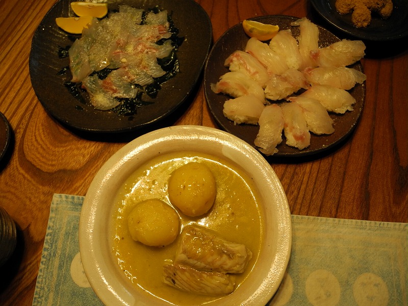 朝7時 -2.13度 曇り(上松)。雪が舞った様で少しだけ白くなって居るけど、昨日より随分と暖かく感じる朝です。やっぱし一か月遅れの冬の様で、「冬将軍到来」って感じです。でも、短い冬になる事でしょうね?。昨日は各地で「成人の日」の催しが有った様ですが、何年か前には一部の若者が大騒ぎして問題視され話題になったけど、今は静かになってる様で、いい事かと思います。しかし成人を迎えるまで「煙草」「お酒」の禁止事項を、何も手を出さない儘成人を迎える人が、何人いるのでしょうか?。「選挙ばかりではなく全部18歳にしたらいいのに」と思う吾輩です。写真は、マダカです。釣り上げた山さんは「マダカ」と言ってますが、立派な「スズキ」だと思います。年末年始の「鮃釣り」に失敗して気持ちも「もやもや」してた事でしょう。私も、昨年作った「鱗剥ぎ」を使い綺麗に鱗が剝がれてくれ、嬉しい限りでした。もう一枚は、スズキの夕飯です。スズキのレモン煮 握り寿司 カルパッチョです。レモン煮は、マイヤーレモンの皮2個分を下して、オリーブオイルで煮込む簡単な料理ですが、ジャガイモとの相性が良くて美味しいのです。カルパッチョは、同封されていたワカメを野菜代わりにしたのですが、是もサッパリで美味しかった。年越しに鮮魚がなかったから、改めての年越しです。