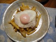 朝6時 -3.01度 曇り(上松)。曇ってるけど気温は氷点下で、少し風が有るから空気は冷たく感じる朝です。写真は、昨日の降雪の時間帯です。一時雪が間断なく降り始め、見てる真に2㎝の積雪には「今日は雪掻きせねば」と腹を括ったのですが、直ぐに止んで降ったり止んだりを繰り返し、今朝は日陰に少し白く残っただけで、雪掻きもしなくて済んだのです。なんか、冬らしい様ならしくない様な、変な感じの天気になって居ます?。もう一枚は、フライドポテト卵焼き乗せです。TVでスペイン人シェフに「パエリヤ」を教えて貰う番組の中で、店のメニュー紹介で、瞬間映った「ポテトに卵焼き乗せ」が気になって作ってみました。半熟卵にナイフを入れて黄身を潰してフライドポテトに混ぜるのですが、今まで考えた事もない食べ方で、「旨い」だったけど、ポテトの熱で、半熟卵が固焼き卵になってしまったのです。TV画面では、卵が2個乗ってたのですが、訳が分かった気がして、せこい考えが失敗の元だった様です。でも、このポテトの上に、卵2個は使わないと思うのです。またいつか再挑戦します。