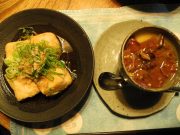 朝7時 -5.3度 ほぼ晴(上松)。昨日より霜の量は少ないけど、空気の冷たさは相変わらずの朝です。予報では、今週は「寒波到来」とかで、いよいよ二桁の氷点下になり、雪掻きをしなくてはならないかも知れません?。雪が全く降らないわけではないけど、降っても雪掻きをしなくて済む量の降雪ですから、今の所老人には優しい冬になってるのです。此の侭、雪掻きなしの冬であってくれたら嬉しいけど、夏場の水不足も心配になりそうです。写真は、霜です。おばさんも、暖かくなってから散歩に出掛けて行くけど、日陰にはこんなに「霜げてる」所もある様です。もう一枚は、夕飯です。去来荘の秋の定番「イクチの茶碗蒸し」と「揚げ出し豆腐」です。私の大好きな「イクチの茶碗蒸し」ですが、この取り合わせを「よく考えたものだ」と今でも感心します。「揚げ出し豆腐」は、夏野菜か山菜を添えてお出しして、皆さんに喜んで頂いた事を思い出します。おばさんも思い出しながら作った事でしょう。