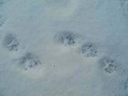朝7時 -9.2度 快晴(上松)。雲一つなく晴れて、極寒の寒さの朝です。こんな朝に限って薪ストーブの火の点きが悪く、「いらいら」しながら「火吹き竹」で「ぷーぷー」火熾しをしてます。昨日の昼間も気温が上がらず「真冬日は」辛うじて避けられたものの、ほんの少しプラスになっただけで、一日中風も強く寒い一日でした。ただ雪掻きはしないで「済んだ」なんですが、「しなかった」が本音です。雪も半分位太陽熱で溶けたから、「まあ良し」としましょうかね?。今日も晴れてくれれば、きっと消えてくれる事でしょう。写真は、おばさんの散歩道です。雪が上がって青空の気持ちいい散歩の様ですが、手も悴む寒さだった事でしょう。甥の言った「木曽の雪はいいよね」に冬である事の良さを忘れて居た、自分が恥ずかしく情けなく「寒いの嫌だ」「雪は嫌だ」ですが、これが木曽の冬で、「楽しまなくちゃ」と反省させられてます。もう一枚は、足跡です。NORAを思い出したのか雪の足跡を写してますが、聞いてみたら「猫の足跡可愛いでしょ」と分って写したみたいです。NORAも冬になると、赤沢街道を入り口の貯木場から公園までの往復を、毎晩走ってた事が思い出されます。懐かしいのです。