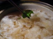 朝7時 -8.53度 快晴(上松)。雲一つない空と真っ白に降りた霜で、冷え込みがきつい朝です。一体いつになったら、この寒波が去ってくれるのでしょうか(涙)。昨日のNEWSで「諏訪湖の全面結氷は諦めました」と神社の神主が発表してました。あれだけの大きさの湖の全面結氷は、氷点下10度以上にならないと無理の様です。この神事も、4日の立春迄毎日測定するのだそうですが、立春を前に諦めた様です。考えてみると昔は相当に寒かったのでしょうけど、そんな嫌な事はみんな忘れちゃって「今の寒さが一番」なんですね。写真は、二月の満月です。少し雪雲が掛かって居ておぼろ月でしたが、満月のお月見が出来ました。でも、その後直ぐに雲に隠れてしまい、時間を間違えたら見る事は出来なかった様です。もう一枚は、ワカメ鍋です。知多の山さんが、友人から頂いた生ワカメを大量に送ってくれました。「もっと持って行け」なんて言われながら買い物袋に詰め込んだそうで、そのお裾分けを頂きました。この「メカブ」も「ぬるっとしてるけどコリコリ」して美味しいのです。このワカメ鍋の楽しさは、鍋にワカメを入れ「シャブシャブ」すると、黒ずんでるワカメが真緑に変ってくれる事です。旬の走りのワカメをふんだんに頂けて、最高の夕食でした。木曽で、こんな贅沢していいのでしょうか。