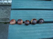 朝6時 13.7度 曇り(上松)。昨日の朝の10度には驚かされたけど、今朝の13度には驚きもない「ちょっと寒いかな」程度の朝です。それにしても、一気に気温が下がったり水道の水が冷たくなったりで、驚かされる事ばかりです。今の天気ですらロクに当てられないのに、三カ月の長期予報をまことしやかに述べてるのには、是はビックリ仰天です。写真は、里芋です。この葉を見て「里芋」って言える方はどの位居るのでしょう?。地下に眠る芋を見れば分るでしょうけど、里芋の葉はこんなに大きくなるのです。もう一枚は、栃の実です。おばさんも、よく間違わないで落ちてる実を見付けたものです。大概の人は「クリにしては形が変だな?」なんですが。この実の灰汁の強さは半端ではなく、正月に「栃餅」を見掛けた事が有るかも知れませんが、この灰汁を抜くのに1週間は掛かるのではないのでしょうか?。「大変」だと聞いてるから、自分は絶対に手を出さないのです。でも、正月の栃餅を作る習慣の家では、女性の方は?苦労してる様で、作った時の「おー栃餅だー」と言われるのが楽しみで「遣らされてるかも」知れませんね。