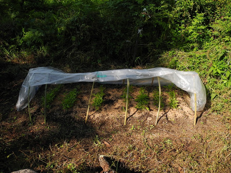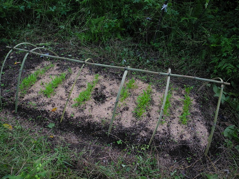 朝6時 13.1度 ほぼ晴(上松)。コオロギが力を振り絞って鳴いて居て、少し可哀想な気もする肌寒い朝です。9月も後一週間でお終いになるけど、まだ扇風機は出したままで、部屋の感じはまだ夏模様です。写真は、家庭菜園?です。急に空気が冷たくなったから、折角伸び始めてる「春菊」と「ほうれん草」を霜で駄目にしたくないから、「それならば」と竹藪へ行って竹を数本頂いて来て、4等分くらいに割り、ドームを作ってみたのです。後はアマゾンから届くビニールシートの到着を待つばかりなんですが、ビニールを乗せた時に上手い事「きっちり」乗っかて止まってくれるのか心配です。しかし、この空気の冷え込みは半端でなくて、こうした野菜類の成長には影響が出そうです。また「野菜高騰」なんてNEWSが、報道されそうです。