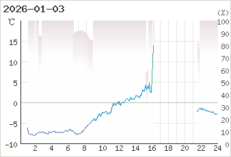 現在の気温 -3.2 ℃ (2026-01-04 00:48:31)